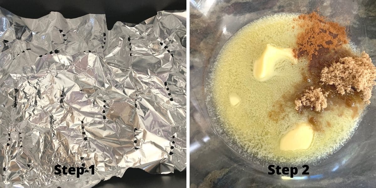 Step 2: Place the butter, brown sugar, and ground cinnamon into a small bowl. Microwave for 25-30 seconds to melt the butter. Mix the sugar mixture with the melted butter with a whisk or a spoon.