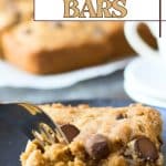 The Quick Bite: These gluten-free banana bars are soft, moist, and full of ripe banana flavor. They bake up with a texture similar to blondies and are loaded with chocolate chips.